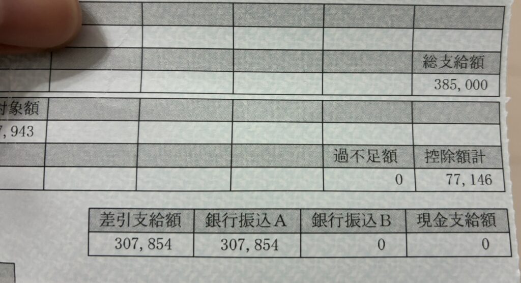 冬ボーナスは385,000円(手取りで307,854円)でした↓