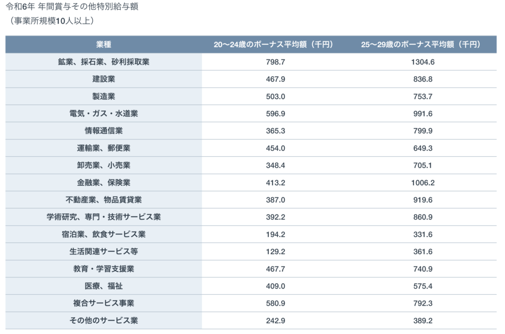 https://mynavi-agent.jp/dainishinsotsu/canvas/2024/05/post-1271.html 20代のボーナス平均額は?業種や性別、学歴など項目ごとに …マイナビエージェント