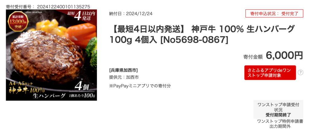 例)下記は「さとふる」でシュミレーションしてみた結果の画面です。