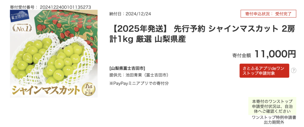 2,000円を支払って、それ以上のお礼の品がもらえます。