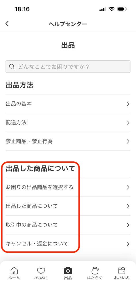 「出品した商品について」から該当する項目を選択していけばOKです。