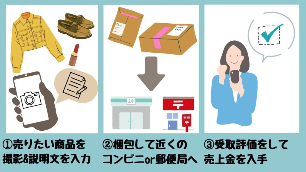 メルカリは出品から売却、取引終了までの流れと各ポイントをお伝えします。