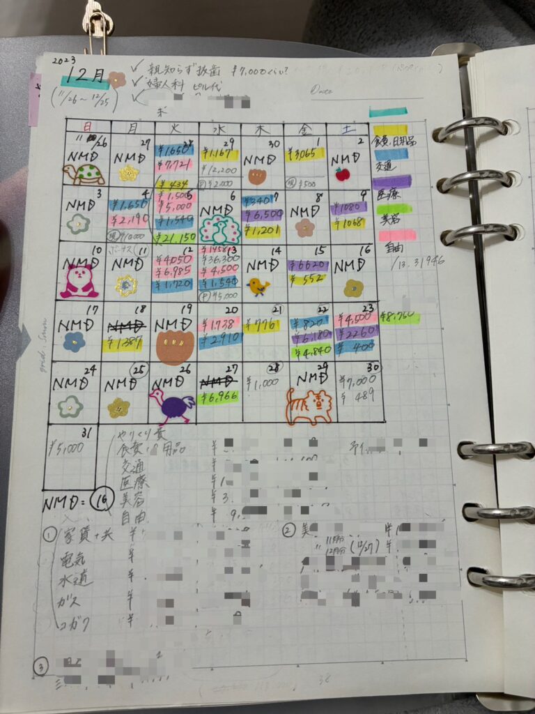 - お金を使わなかった日は『NMD:ノーマネーデイ』でシールを貼っていました。